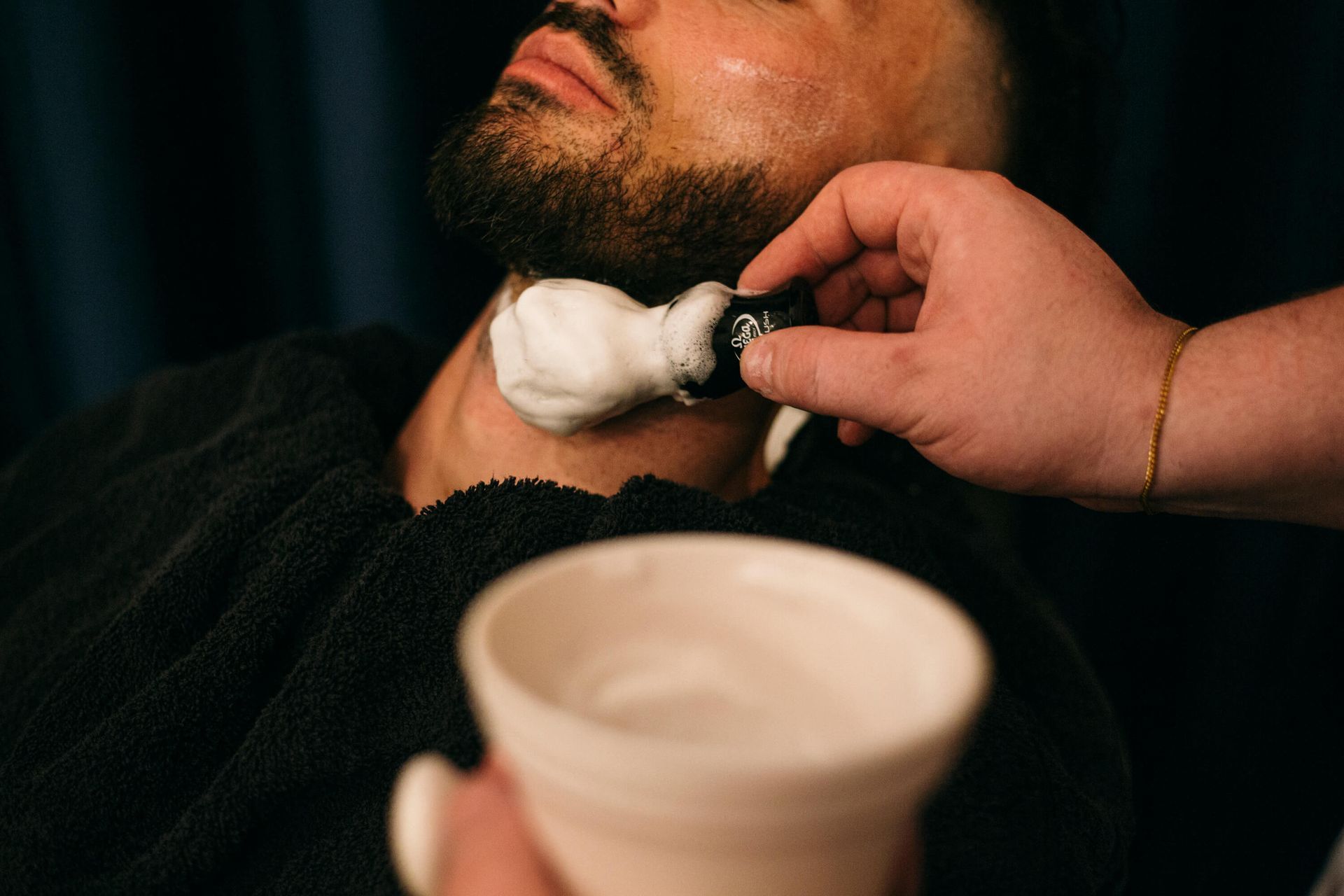 Storitev vključuje posvet z brivcem o obliki in dolžini brade, urejanje ter oblikovanje, pripravo kože (utrjevanje kreme in vroča brisača), britje, zaključek z losjonom in hladno brisačo. Dodamo aftershave in olje za brado. Skupaj s striženjem in urejanjem pričeske traja največ 1 ura 15 minut.